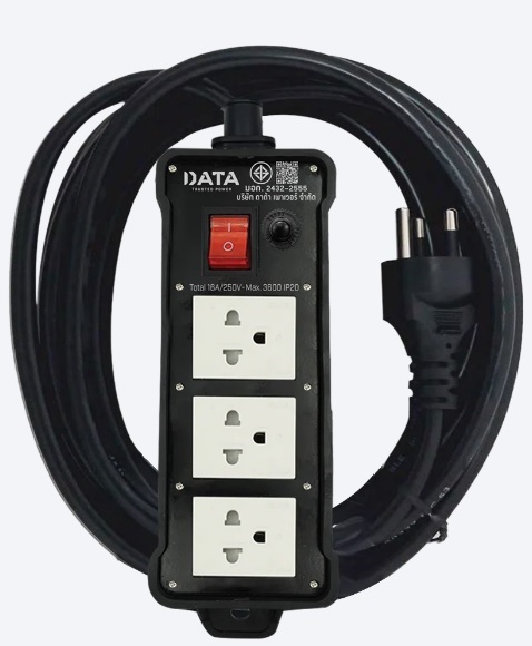 DATA ปลั๊กไฟฟ้าพ่วง รุ่น DB36-20 สีดำ สายไฟยาว 20 เมตร