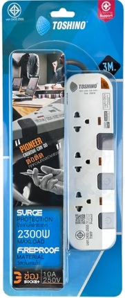 TOSHINO ปลั๊กไฟฟ้า รุ่น P3375-3M WG สีขาว สายไฟยาว 3 เมตร