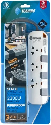TOSHINO ปลั๊กไฟฟ้า รุ่น P3375-5M WG สีขาว สายไฟยาว 3 เมตร